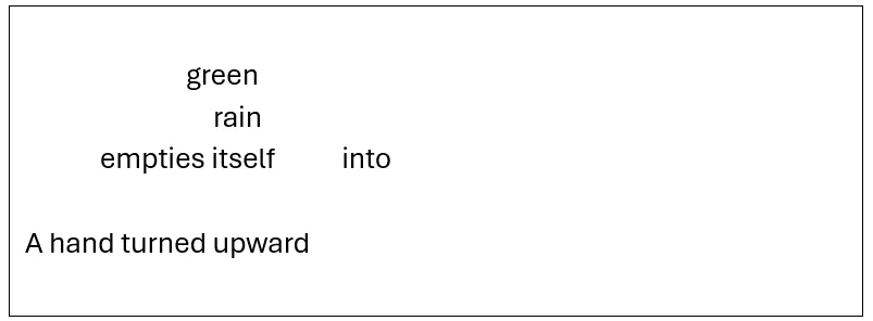 Sourced via 4 passes and a little compression from Jane Hirshfield, “A Hand,” Given Sugar, Given Salt