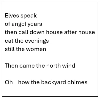 The source material called me. Then called me again, showing me still and chimes as verbs.